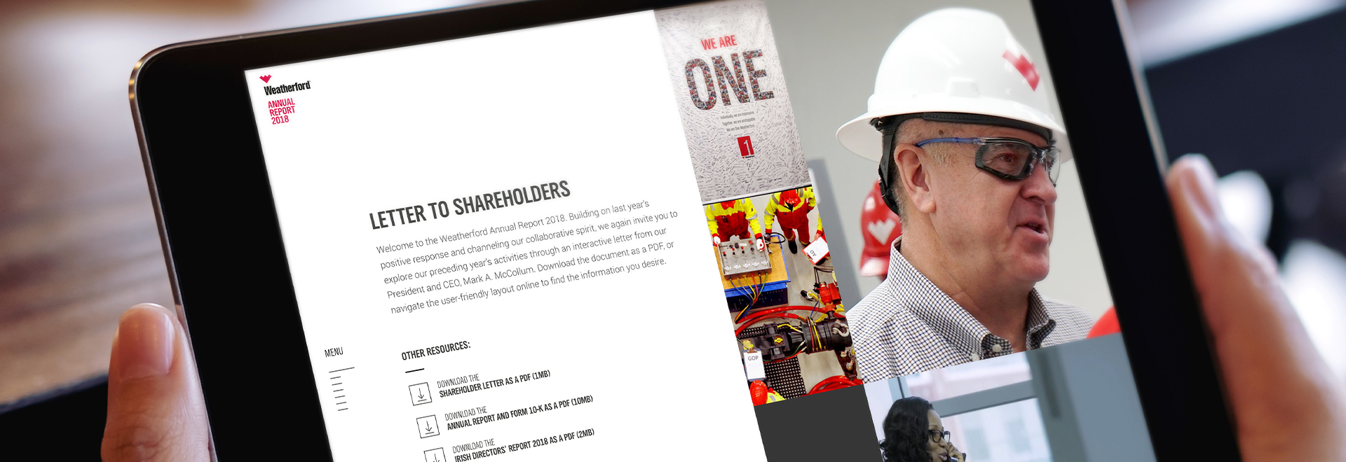 Weatherford are an innovative technology company, and the digital annual report is unlike any other in the oil and gas industry. The digital format is representative of a forward-thinking approach to challenges and the advanced solutions Weatherford provide to their customers.