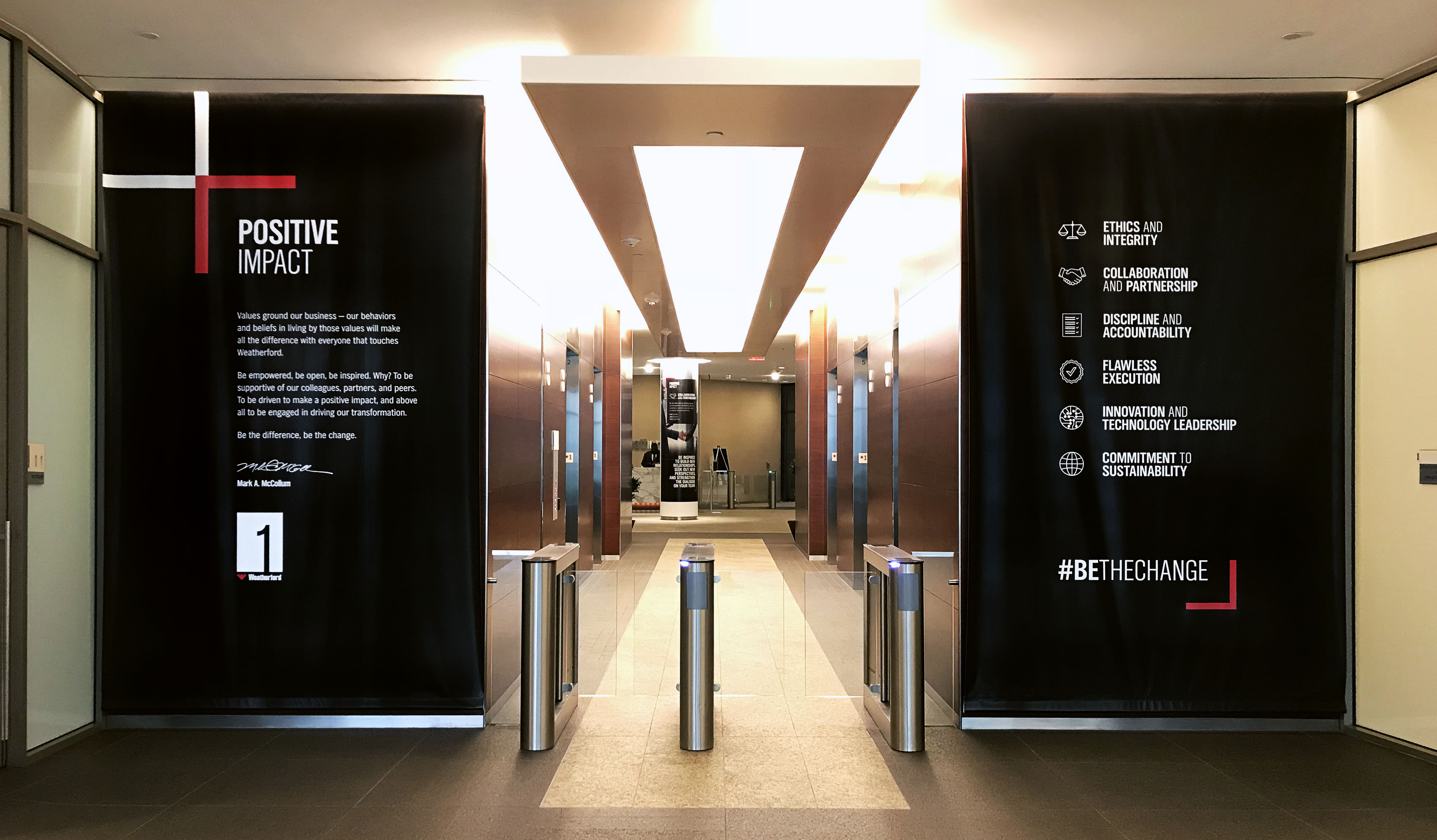 Six values not only guide the everyday actions of the global workforce, but also culture shape the organization and compliment the positive impact established by the CEO. Oakwood developed the language and look and feel for the comms elements that featured across global locations.